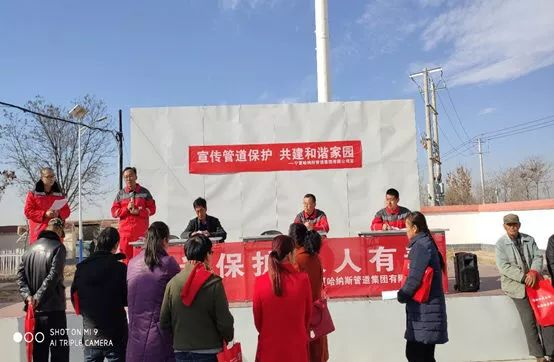 2019年11月,為進一步增強廣大群眾保護天然氣長輸管道安全的意識,充分發揮各地有關部門的宣傳資源優勢,深入貫徹應急保障管理部門安全專項預案,切實保護管線所經區域人民群眾生命財產安全,全面保障杭銀天然氣長輸管線冬季運行安全,哈納斯管道集團組織員工,先后前往賀蘭縣沿線鄉鎮村莊,并邀請當地相關負責人和群眾,共同參加以“宣傳管道保護,共建和諧家園”為主題的管道保護宣傳活動,企地互動,共筑天然氣長輸管道安全防線。