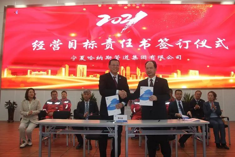 3月9日上午,哈納斯管道集團舉行2021年度經(jīng)營目標(biāo)責(zé)任書簽訂儀式,全體員工參加了會議。會上,孫念總經(jīng)理對2021年工作進行安排部署,提出了“上游增氣量、輸配抓安全、下游拓用戶、手續(xù)早完善、管理求規(guī)范”的工作思路,明確了年度經(jīng)營目標(biāo)。隨后,孫念總經(jīng)理與各子公司負責(zé)人和職能部門負責(zé)人簽訂了2021年經(jīng)營目標(biāo)責(zé)任書,將公司總體經(jīng)營目標(biāo)層層分解,做到“千斤重擔(dān)人人挑、人人肩上有指標(biāo)”。