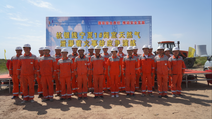 本次演練模擬杭銀線寧夏1#閥室氣液聯動閥引壓管卡套松動漏氣,震動摩擦導致起火,發生火災的事故場景。演練從實戰出發,按照先期處置、接警匯報、預案啟動、疏散布控、新聞發布、應急保供、放散置換、現場搶險、供氣恢復等科目開展。發現火災后,現場處置組立即向中控室進行匯報,得到應急指揮中心總指揮命令后即刻啟動公司級《天然氣泄漏事故專項應急預案》,隨后各應急小組在總指揮的統一調度下迅速開展工作。同時調用消防特種車輛及企業救援力量。現場處置組、生產協調組、警戒疏散組、后勤保障組和搶修組緊密協作、協同配合,經過70分鐘的緊張處理,寧夏1#閥室火災被撲滅,應急事故狀態解除,恢復正常供氣。演練過程中,現場指揮得當,事故處理正確,演習操作步驟規范,達到了預期的演練效果。