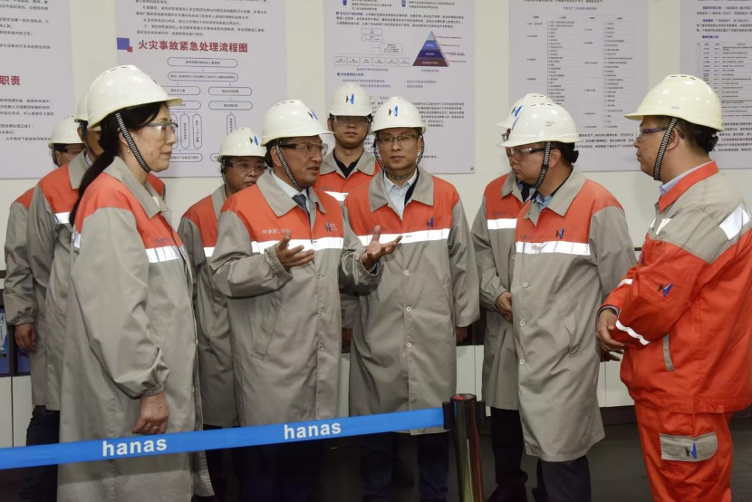 于曉棟一行先后走訪考察了寧夏哈納斯液化天然氣有限公司、寧夏哈納斯天然氣調度中心、寧夏東部熱電股份有限公司和寧夏哈納斯新能源集團有限公司內蒙風電基地,實地了解哈納斯集團發展歷程、綠色經營理念和清潔能源業務架構等,并就各公司標準化運營、安全化生產、精細化管理和數字化轉型等進行現場交流。