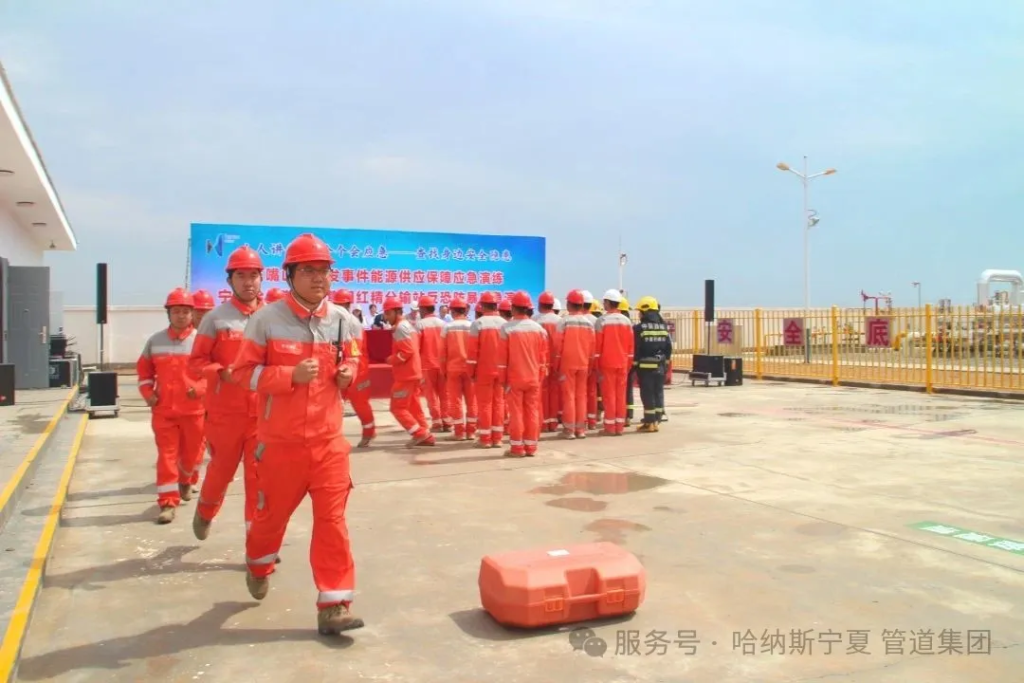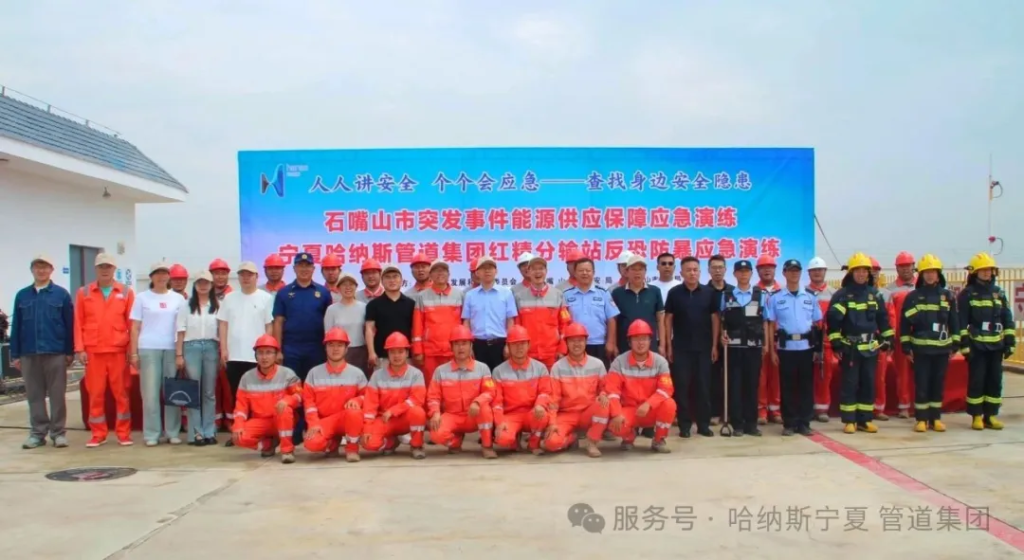 為進一步提升天然氣場站應對突發事件的應急處置能力,強化政企協同作戰水平,切實保障能源安全穩定供應,2025年6月27日,由石嘴山市發展和改革委員會牽頭,聯合寧夏哈納斯管道集團有限公司及石嘴山市公安局、應急管理局、住建局、工信局、交通局、衛健委、平羅縣公安局、紅崖子園區消防隊、紅崖子派出所、國網石嘴山供電公司、國家管網銀川分公司石嘴山站、石嘴山市星瀚集團等部門、單位,在哈納斯紅精分輸站開展了以 “共筑安全防線,同守能源動脈”為主題的能源保供和反恐防暴聯合演練。