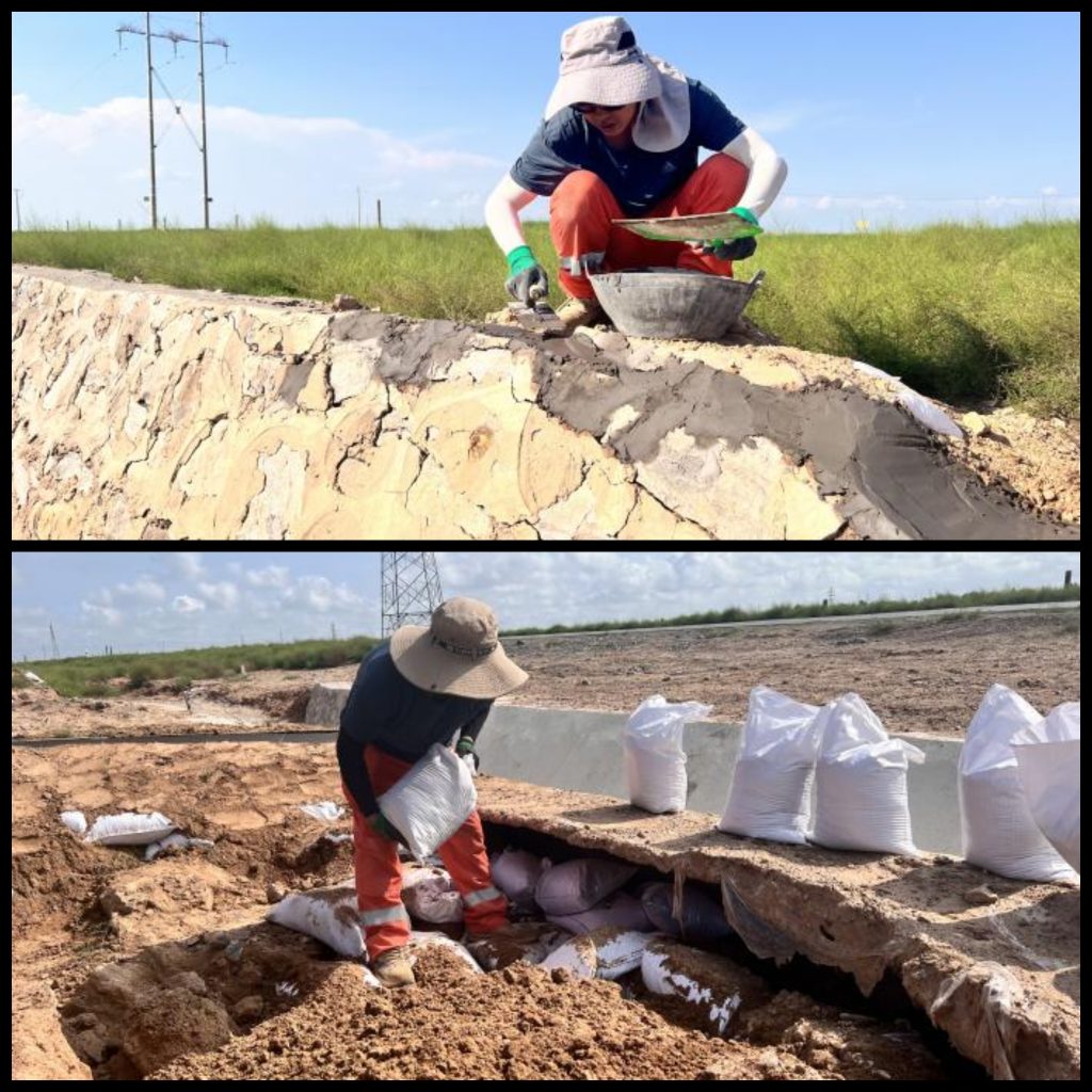 針對沿線小型沖溝、塌陷,場站人員第一時間通過沙袋填筑、石塊堆砌、修渠引流、人工回填等方式快速處置,嚴防水毀范圍擴大危及管道本體及附屬設施安全。