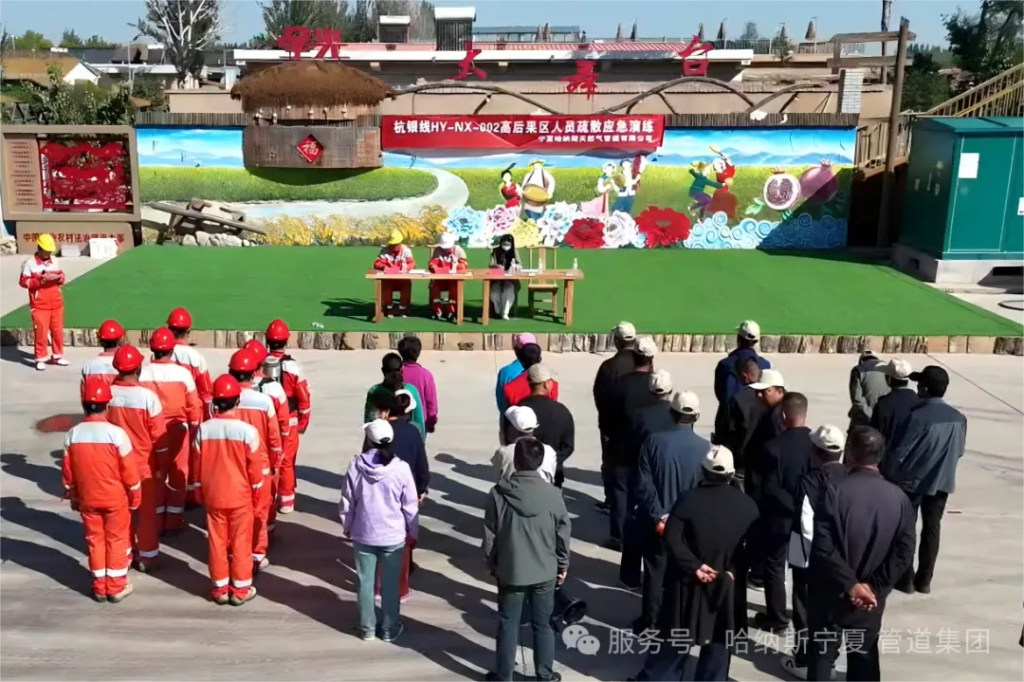 針對雙節期間星光村農家樂游客激增的特點,為強化突發事件應急處置能力,公司聯合賀蘭縣立崗鎮星光村,開展高后果區人員疏散應急演練。本次演練模擬杭銀線4#閥室突發天然氣泄漏事故,全程檢驗“險情發現—信息報告—應急啟動—閥門關斷—人員疏散—后期處置”的全流程響應機制。